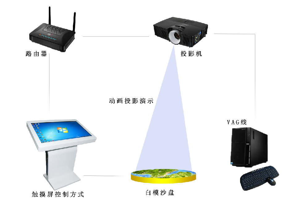 一:在原来传统的沙盘模型上增加多媒体投影机系统;